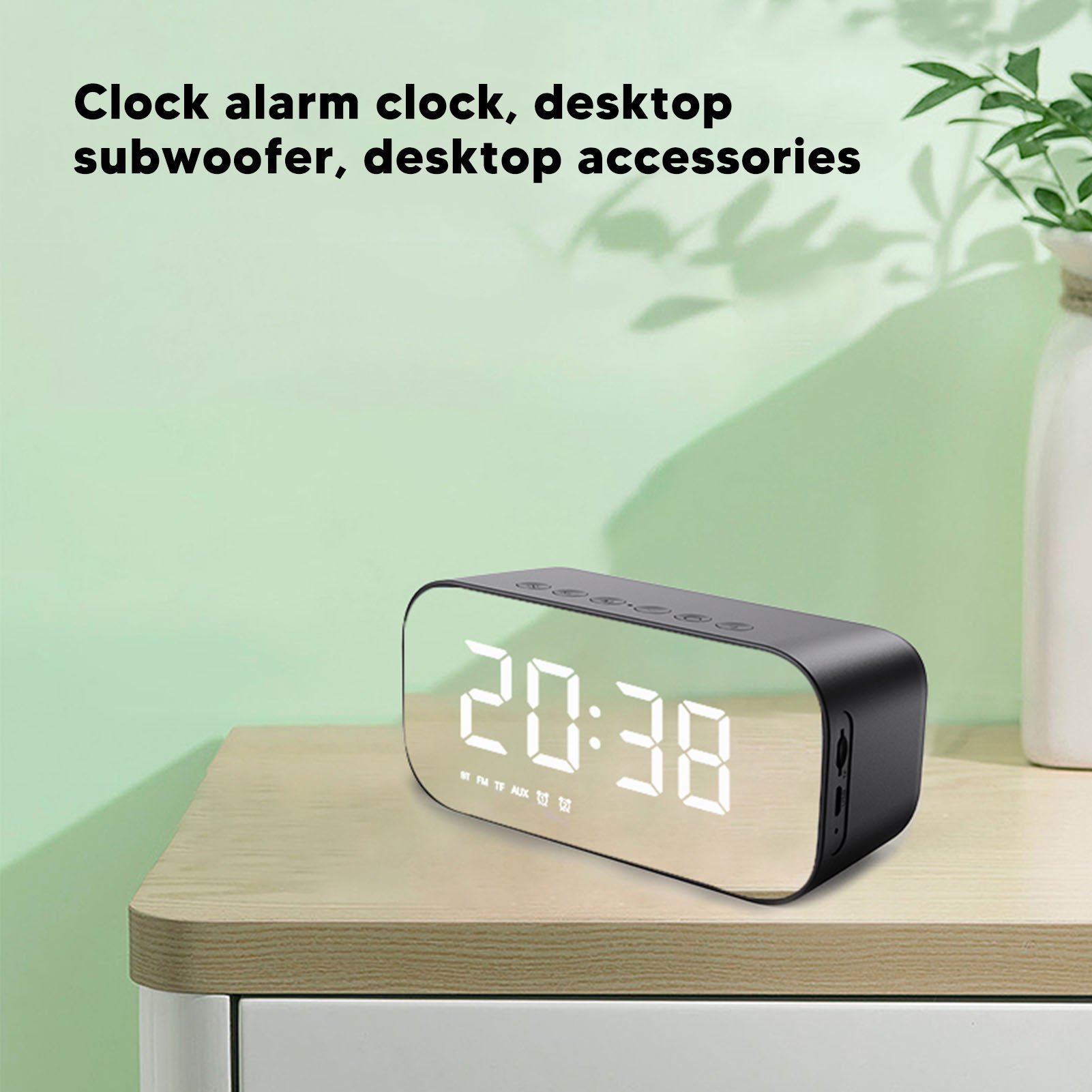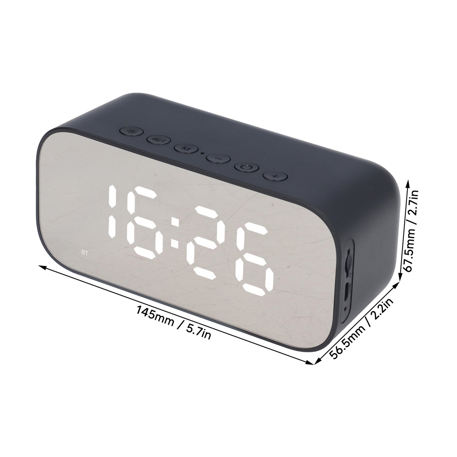 (a-Black) Portable Support TF Card Music Player LED Mirror Screen Dual Alarm Clock Wireless FM Radio Bedroom Bluetooth-compatible Speaker