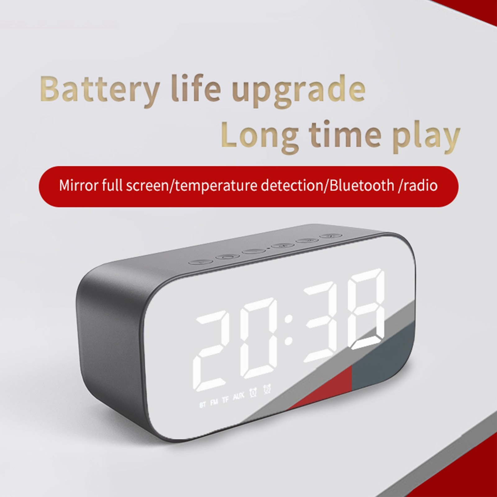 Dual Alarm Clock With Fm Radio, Mirror Led Display And Bluetooth Speaker, Loud Sound, Loud Sound, Loud Sound, Loud Sound, Loud Sound, Loud Sound, Good