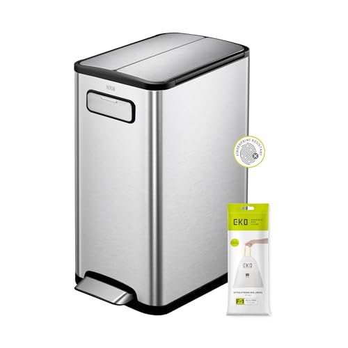 EKO - Ecocasa III Recycling Kitchen Bin - Dual Compartment Pedal Rubbish Bin - Perfect for Kitchen & Home, Stainless Steel 20+20Litre