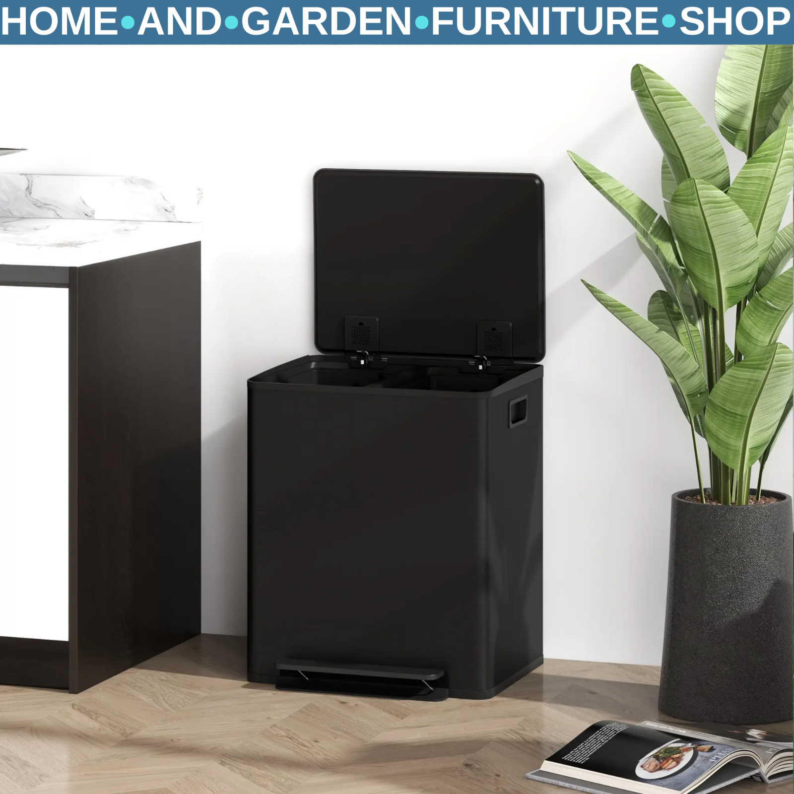 HOMCOM 2 x 15L Dual Kitchen Bin Pedal Bin for Recycling and Waste - Black