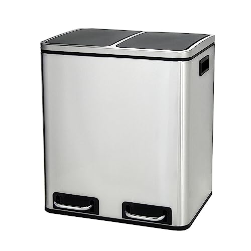 Mbillion Kitchen Bin, Dual Step Trasn Can & Garbage Recycling Bins, Stainless Steel, with Removable Inner Buckets, for Home, Office (15+15L Silver)