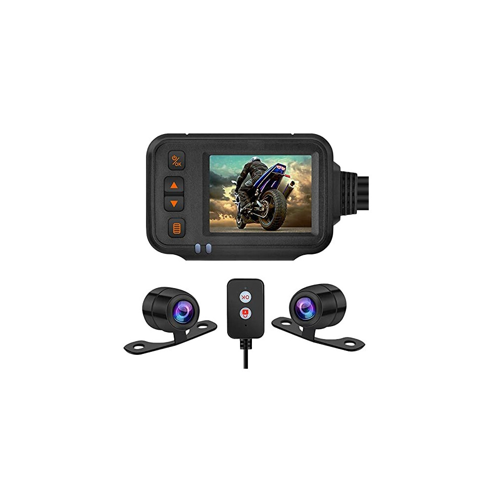 Qezodsx Camera Dash Cam, 2Inch IPS Screen 1080P+720P Dual AHD Bike Dashcam G-Sensor Parking Mode Driving Recorder Black