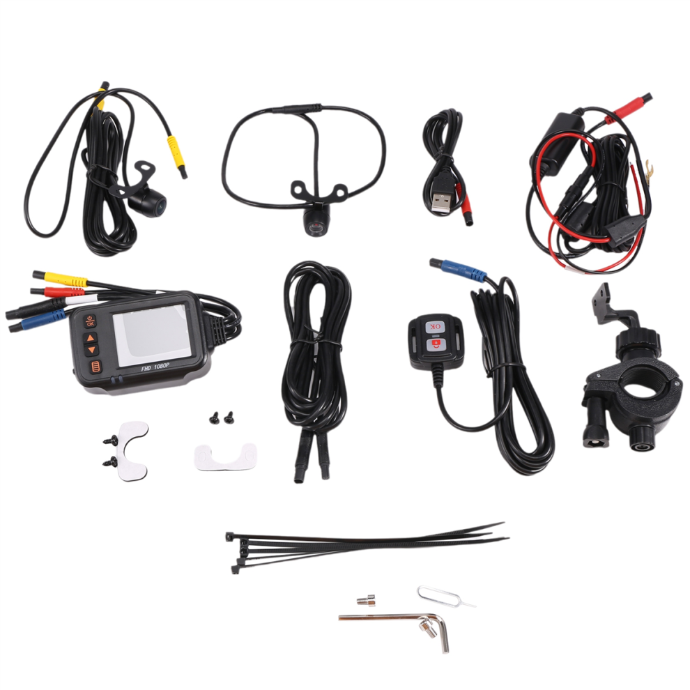Bike Driving Recorder 1080P HD Front Rear Dual Camera Motorcycle Dash Cam Fully Waterproof Loop Recording Parking Monitoring Function Wired Control