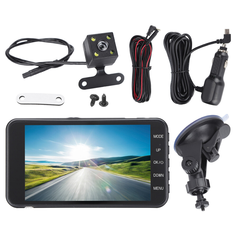 Dash Cam 1080P Car DVR Dual Lens Car Camera Dashcam Wide Angle Video Recorder Rear Camera Night Vision 4 Inch IPS Touch Screen