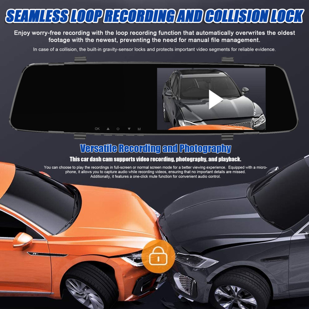 1080P Dual Camera Dash Cam with Night Vision, 4.3" Screen, Parking Sensors