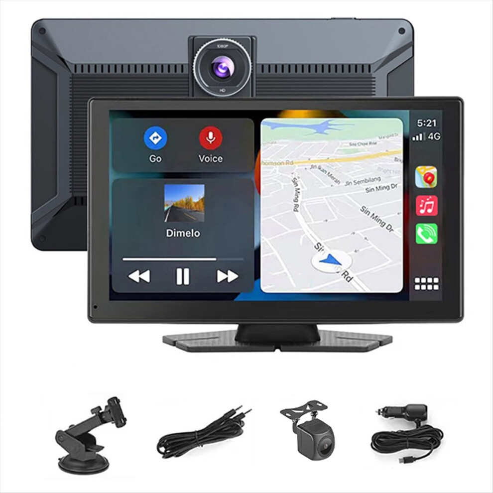 Wireless CarPlay Car Stereo, 9 Inch Portable Car Audio with Front Rear 4K+1080P Dual Camera Dash Cam, CarPlay Screen