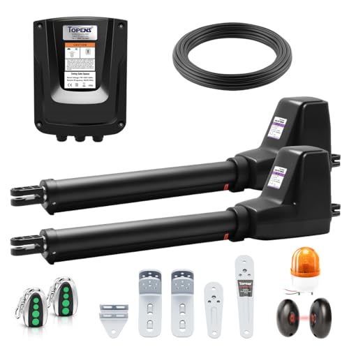 TOPENS AT1202 Dual Swing Gate Opener Heavy Duty Automatic Gate Motor for Double Swing Gates Up to 5.5m per Arm, Electric Driveway Gate Operator AC Powered with Remote Control, Beacon and Photo Sensor