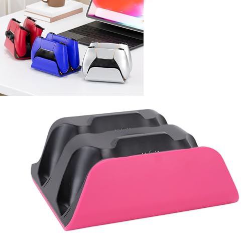 ASHATA Controller Charger for Edge Controller, Dual Charging Dock Station with LED Indicators, Fast Dual Controller Charging Station with USB Cable (Pink Black)