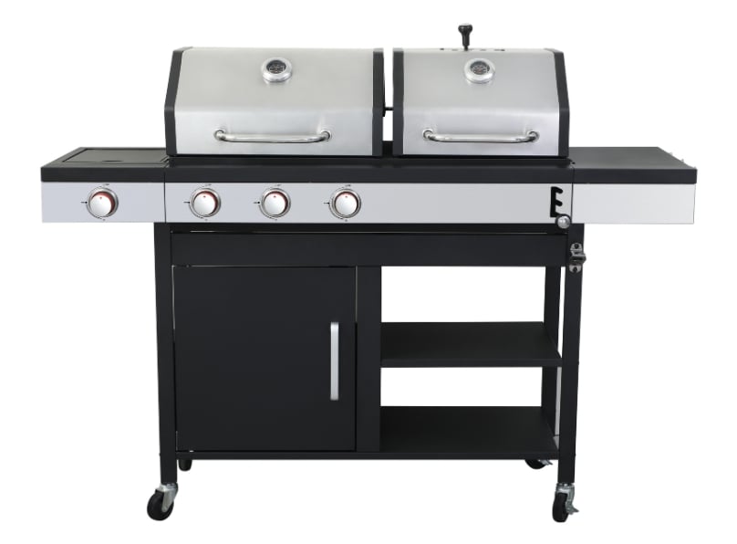 CosmoGrill Hybrid 4 Burner Barbecue with Waterproof Cover | DUO Dual Fuel BBQ 3+1 Gas Grill and Charcoal Smoker BBQ Grill, Thermometer, Warming Rack | Outdoor Portable Dual Fuel Large Coal Barbecue