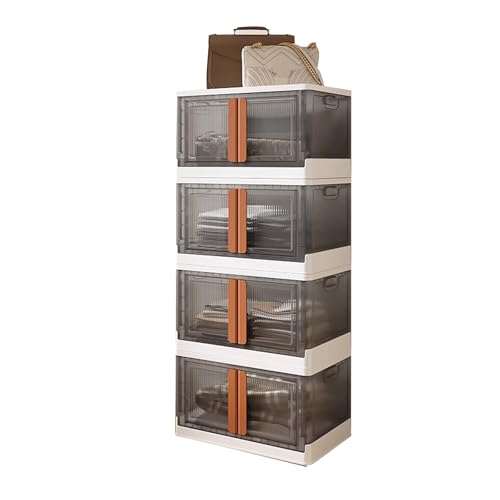 LMXRYPD 4-Tier Storage Rack, Collapsible Storage Bins with Dual Opening Doors, with Lids & Wheels, Lockable, for Kitchen, Bathroom, Bedroom, and Office(Dark Brown)
