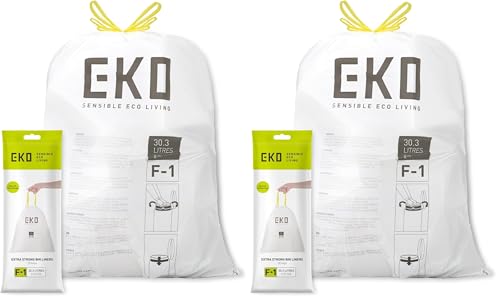 EKO Size F-1 Bin Liners For Dual Compartment Kitchen Bins - 18-28 Litre Capacity - Extra Strong Bags with Drawstring Tie Handles - 20 Bags, White (Pack of 2)