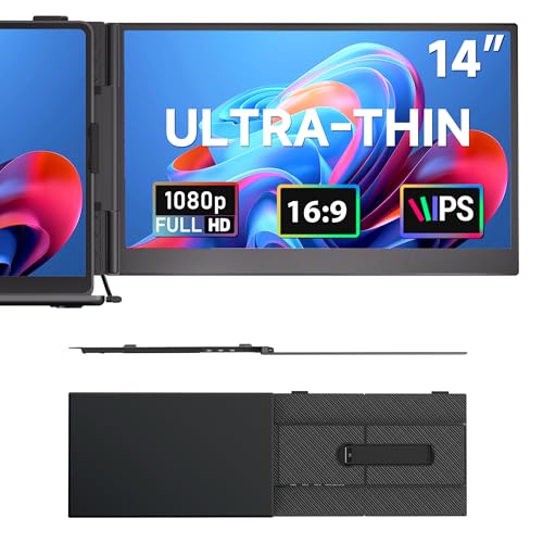 14" Dual Laptop Screen Extender with 1.3lbs - Ultra Thin Portable Monitor for Laptop Plug & Play, FHD 1080P Laptops Extended Monitor for 13"-17" Laptops, USB-C/HDMI Travel Display for Mac/Win