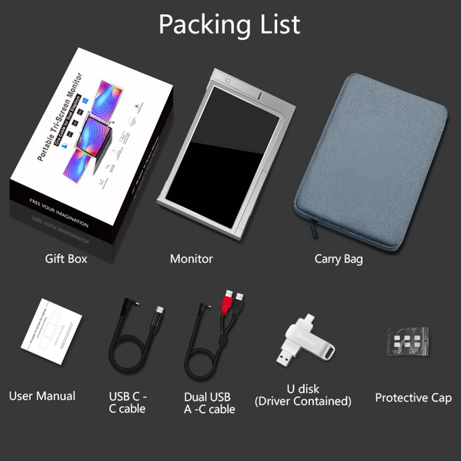 Triple Portable Monitor FHD Dual Screen For Laptop Workstation Mac