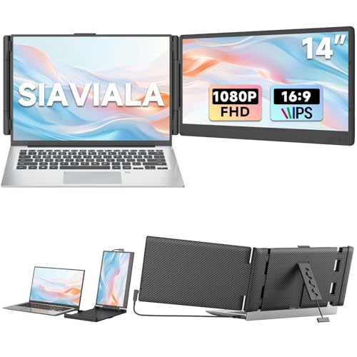siaviala Laptop Screen Extender, 14” FHD 1080P IPS Dual Screen Laptop, Portable Monitor for 13-17.3” Laptops, Plug & Play Portable Screen for Windows/Mac/Android/Switch/PS5 with USB C/HDMI Port
