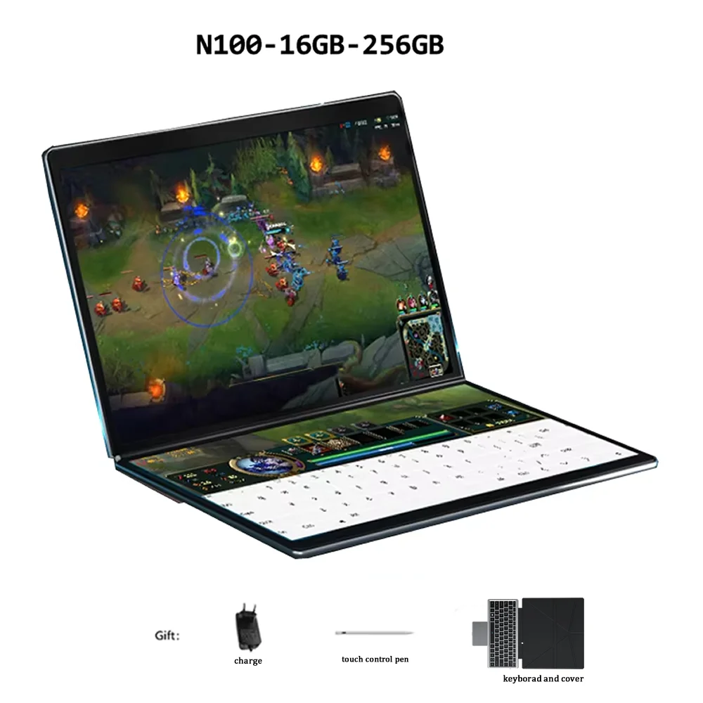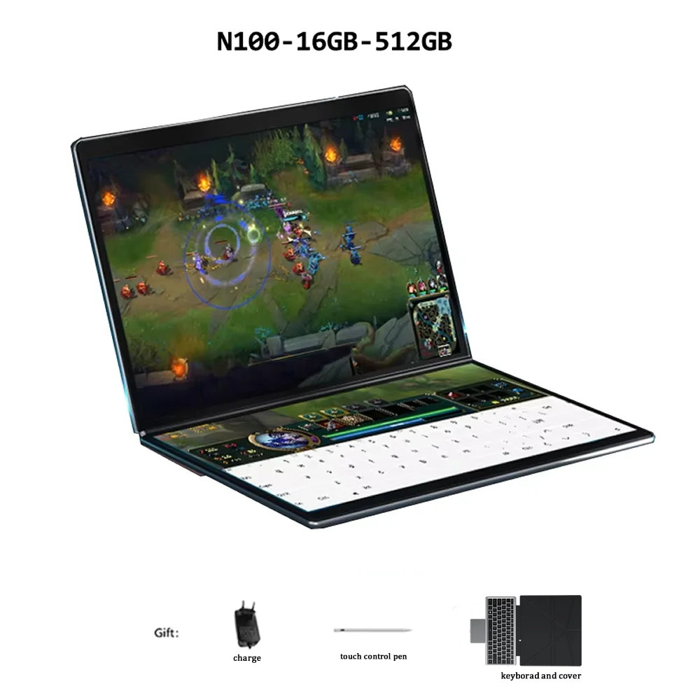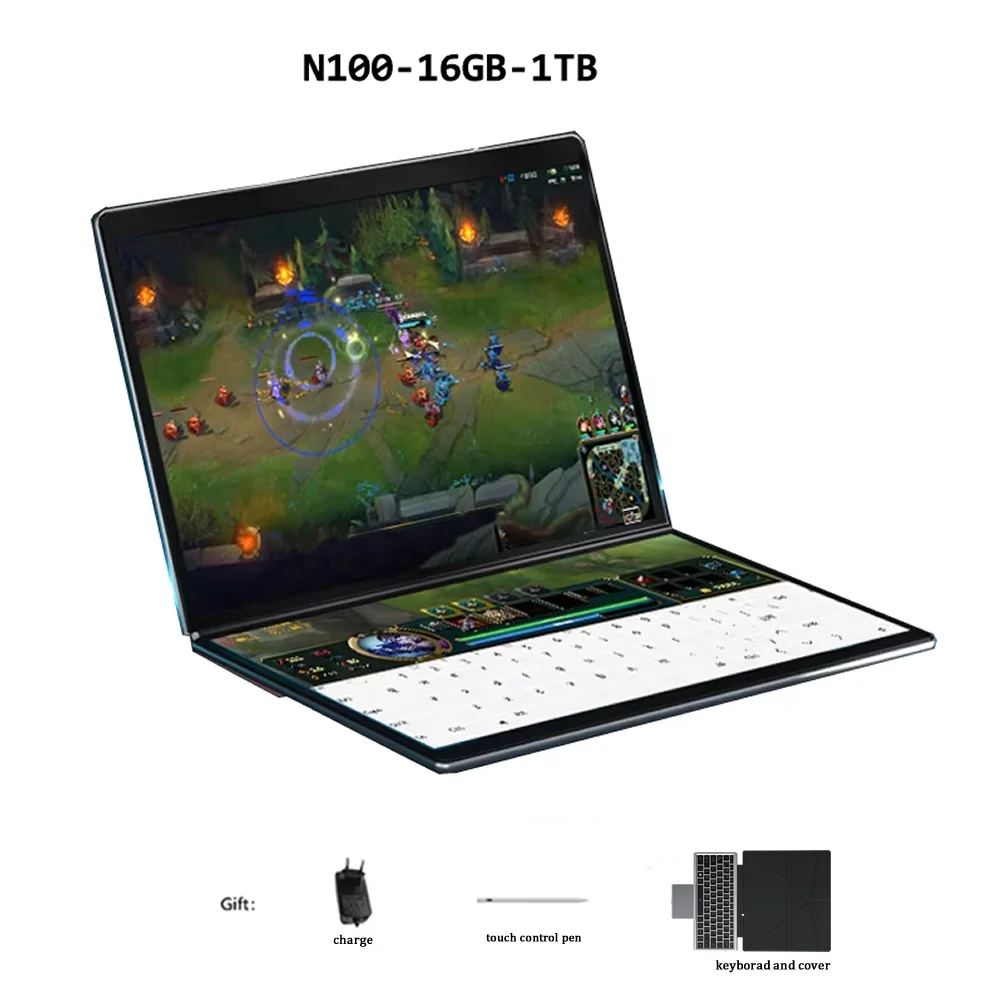 Dual Screen Laptop Intel N100 Processor 13.5+13.5 Inch Touch Screen Gaming Lapto