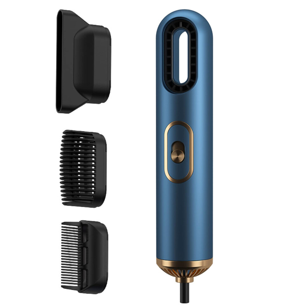 3 in 1 Ionic Hair Dryer Brush Styler with Interchangeable Heads, Fast Drying and Dual Voltage, Blue