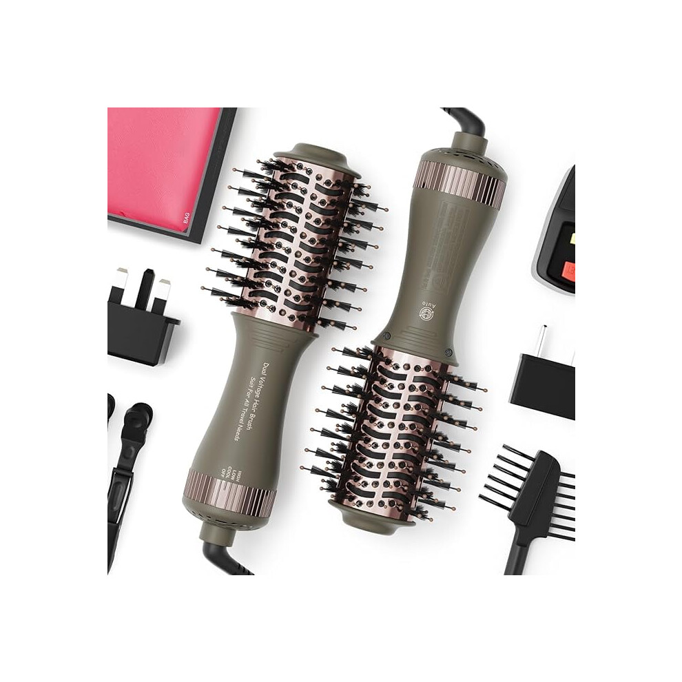 Dual Voltage Travel Hair Dryer Brush, Mini Hot Air Brush Styler & Dryer for European Travel, Hair Trends Nano Titanium 2 Inch One Step Hair Dryer and
