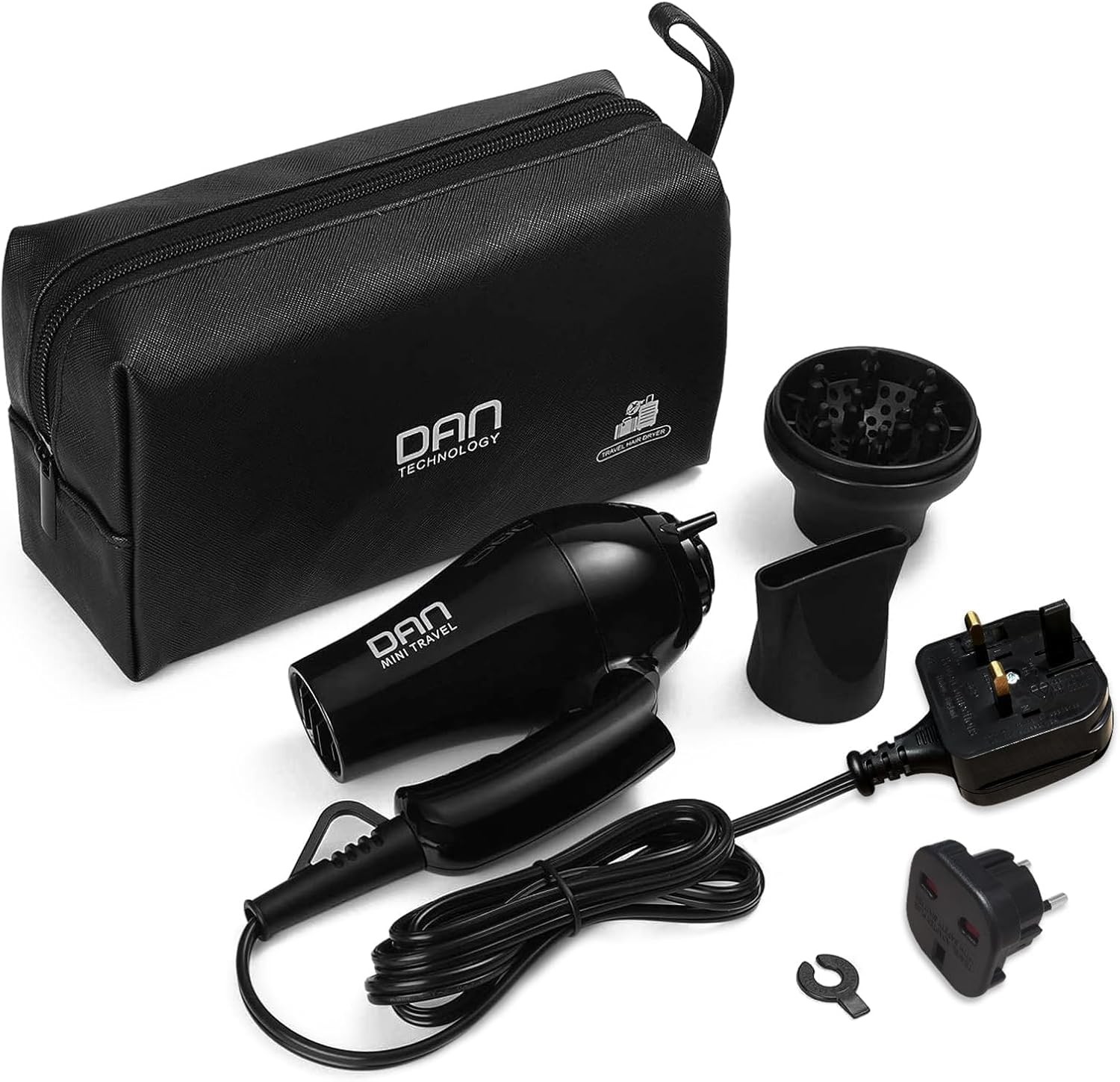 DAN Technology Travel Hair Dryer 1000W Dual Voltage Blow with Plug Adaptor and Storage Bag Mini Hairdryer Folding Handle Small Concentrator & Diffuser