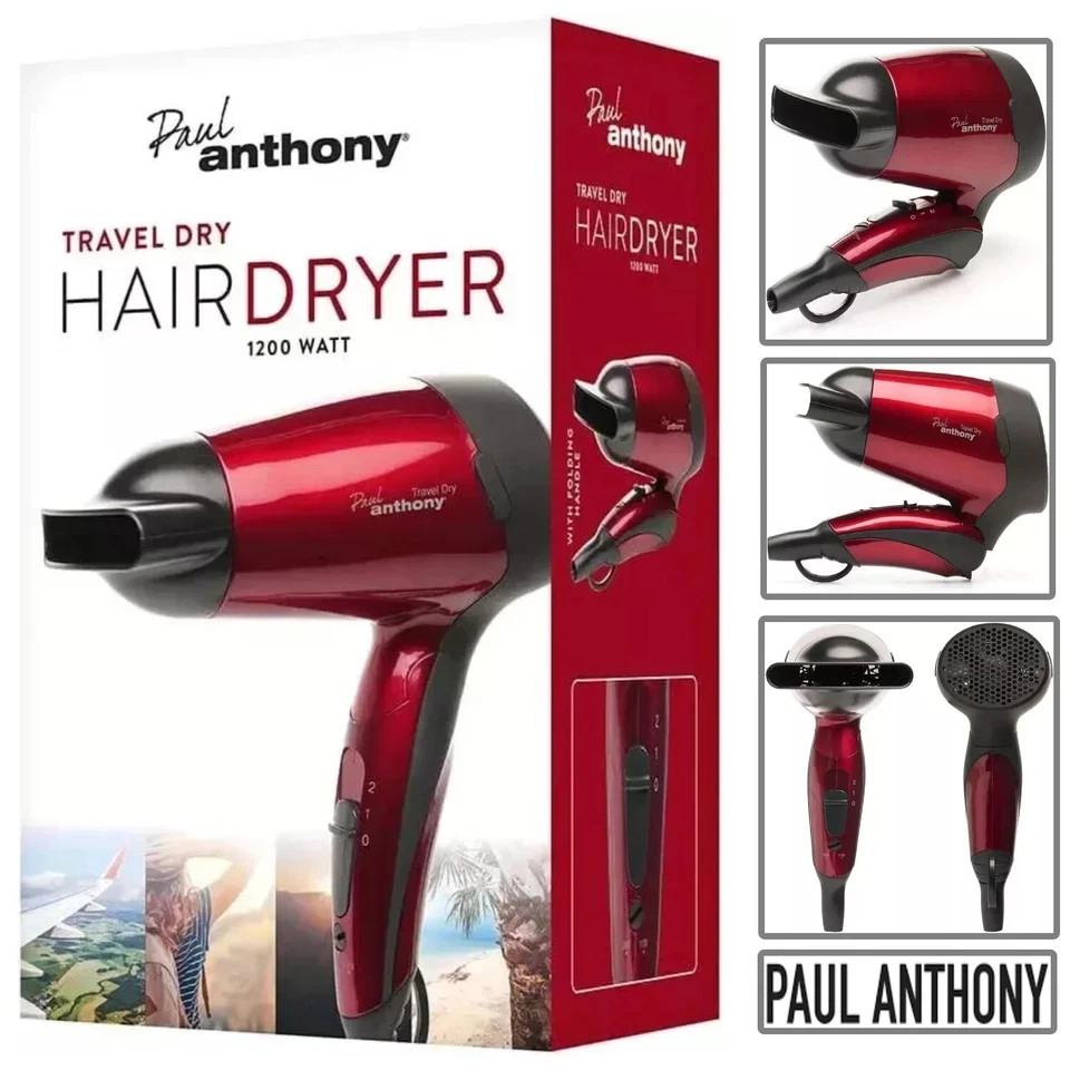 Travel Hair Dryer 1200W Dual Voltage Compact Folding Handle – Metallic Red
