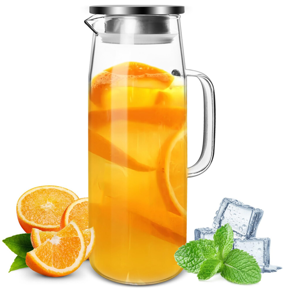 Glass Pitcher 1.5L Water Jug Juice Carafe Cocktail Kettle with Lid Cold/Hot