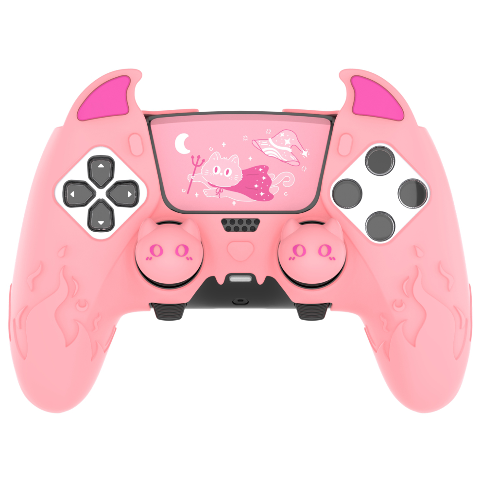 Silicone Case and Joystick Caps for PS5 DualSense Edge Controller - Little Demon Pink