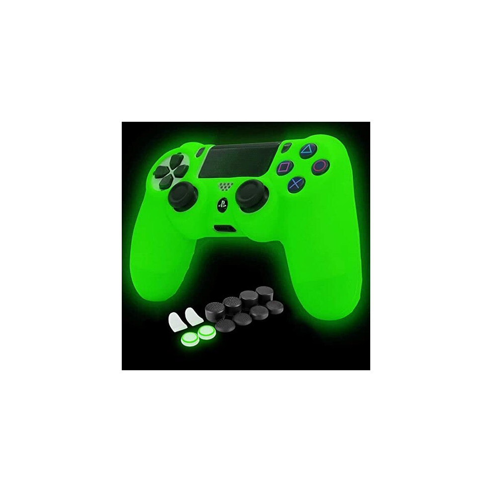 HLRAO PS4 Controller Skin Silicone Grip Glow in Dark Protective Case for PS4/Slim/Pro Dualshock 4 Controller + 8 FPS PRO Thumb Grips+2 Pcs C