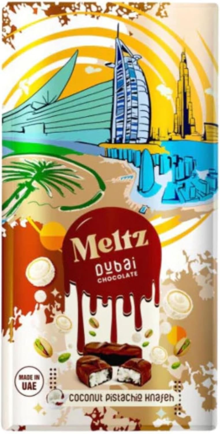 Meltz Dubai Knafeh Milk Chocolate Bar – Kunafa with Coconut Filling – Premi