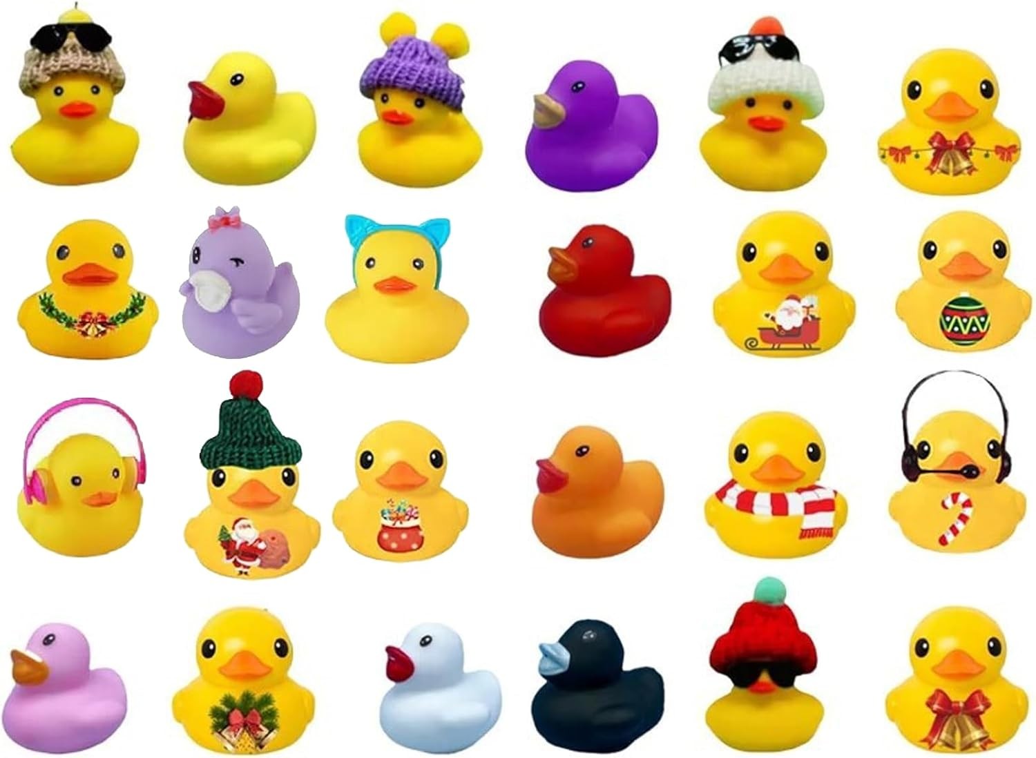 24PCS Rubber Duck Advent Calendar - 2025 Christmas Calendar, Tiny Mini Rubber D