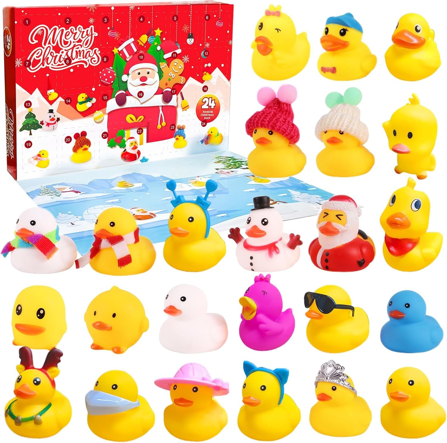 24-Day Rubber Duck Advent Calendar Kids Bath Duck Christmas Countdown 24 Surprise Christmas Rubber Ducks Perfect Party Gift for 12M+ Boys & Girls