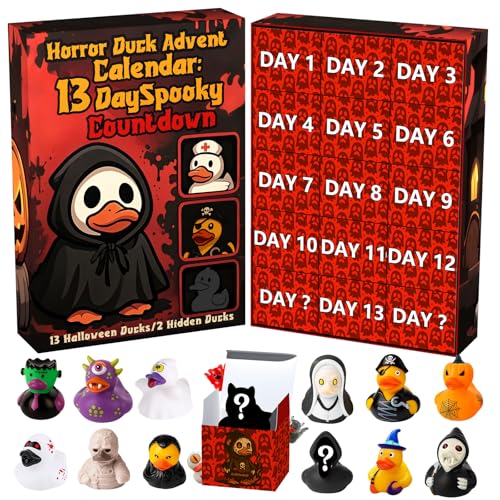 Funewest Duck Advent Calendar 2025, 13 Days Christmas Countdown Rubber Duck Set, Christmas Decoration Stocking Filler, Bath Toys, Fun Surprise Blind Box for Toddlers, Boys, Girls