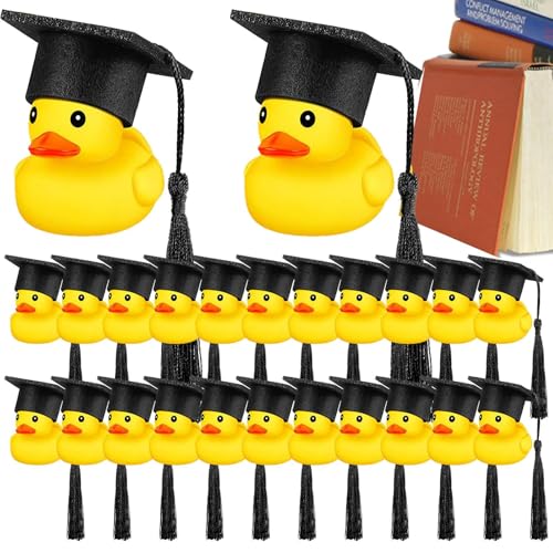 Graduation Rubber Ducks | Squeaky Duck with Mortar Board Graduation | Car Dashboard Mini Ducks | Rubber Graduate for Graduation Theme, Birthday Party