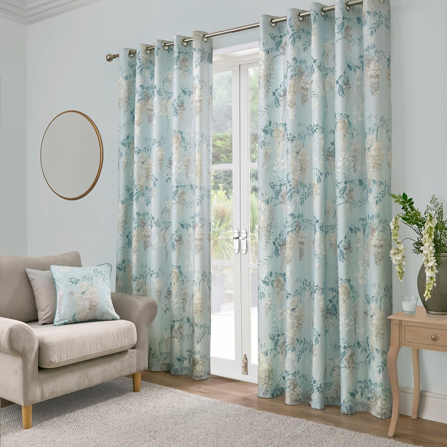 Dreams & Drapes - Duck Egg Wisteria Curtains W66 x L54 (168 x 137cm) - 2x Panels - Flower Eyelet Duck Egg Blue Floral Door Curtains for Bedroom/Living Room