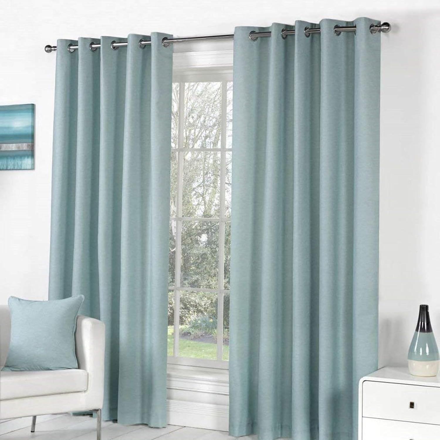 Fusion Sorbonne Eyelet Curtains – Duck Egg Blue Thermal Cotton Drapes – 168 x 137cm (66" x 54") – Fully Lined Window Curtains for Bedroom & Living Room – Soft Blue Door Curtain – Pair