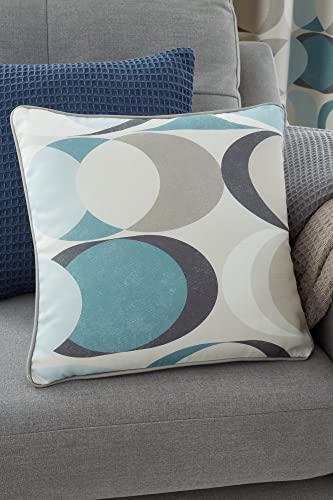 Fusion - Duck Egg Retro Vector Circle Cushion (43 x 43cm) - 100% Cotton - Filling Included - Grey Piped Edge Cushion in Duck Egg - Circle Geometric Cushion with Insert - Matching Curtains Available