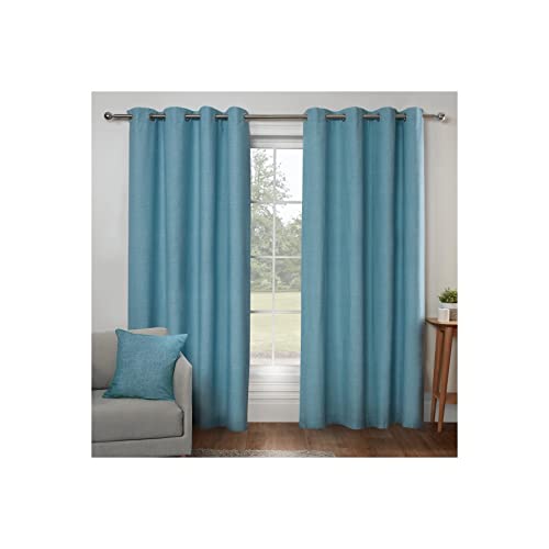 Fusion Sorbonne Duck Egg Blue Drapes W117 x L137cm – 2 Panels – 100% Cotton Eyelet – Thermal Light Blue Curtains for Bedroom/Living Room – Door Panel – Soft Textured Fabric