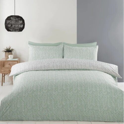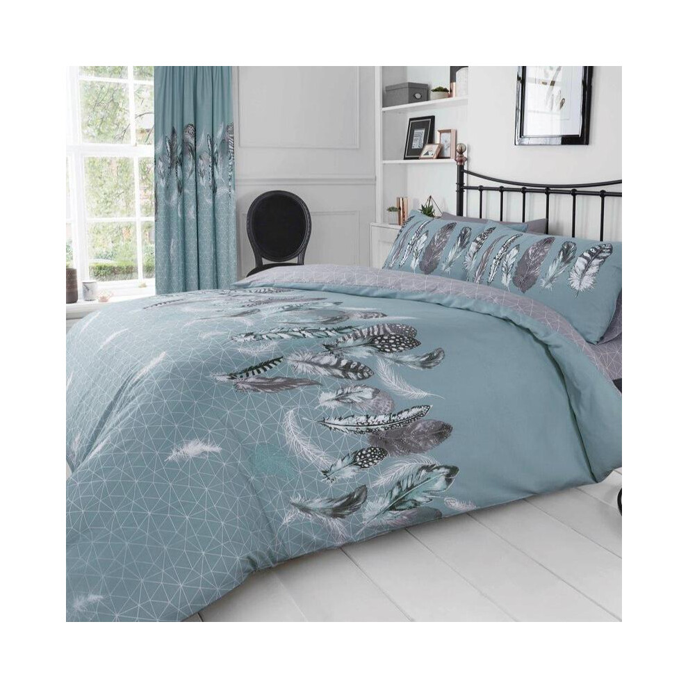 (Feather Duck Egg, Double) Printed Duvet Cover Set Poly Cotton Reversible Geometric Pattern Single Double King Size