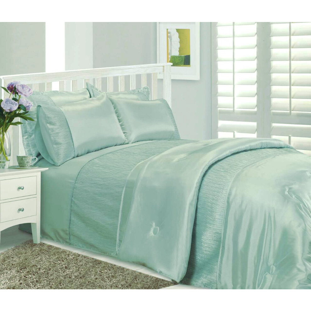 King Size Bed Serene Duck Egg Blue, Duvet/Quilt Cover Bedding Set, By Ambiance, Luxurious Faux Silk Crinkle Effect Band