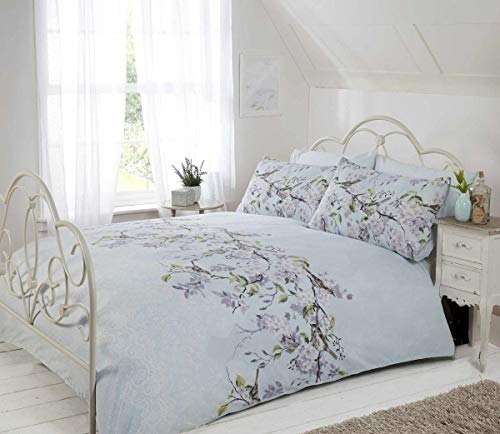 Appletree - Duck Egg Spring Duvet Cover - Double Bedding Size (200 x 200cm) - Soft 100% Cotton - 2 Pillowcases - Contemporary Floral Duvet Cover in