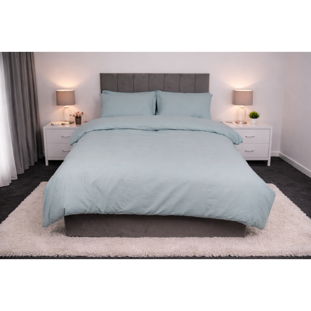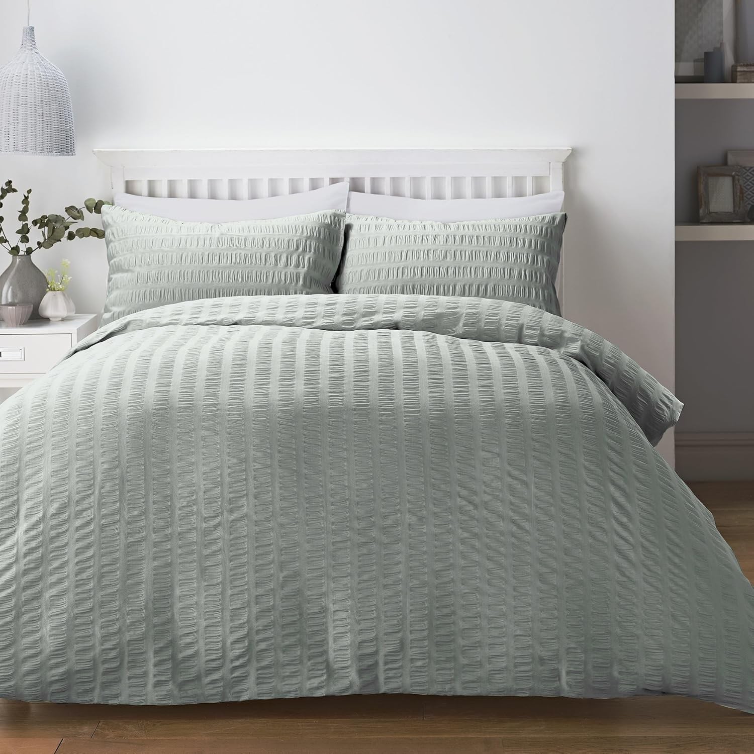 (Duck Egg, Double ) Seersucker Duvet Cover Set Rich Cotton Bedding Sets All Sizes Available Cotton Soft Washable
