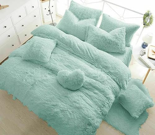 Teddy Fleece Duvet Cover with Pillow Case Thermal Warm Soft Cozy Bedding Bed Set (Duck Egg, Super king Duvet Cover Inc P/Case)