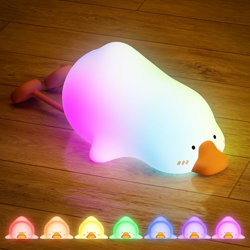 Cute Duck Night Light for Kids, 7 Colors & 3 Brightness Dimmable LED Night Lamp