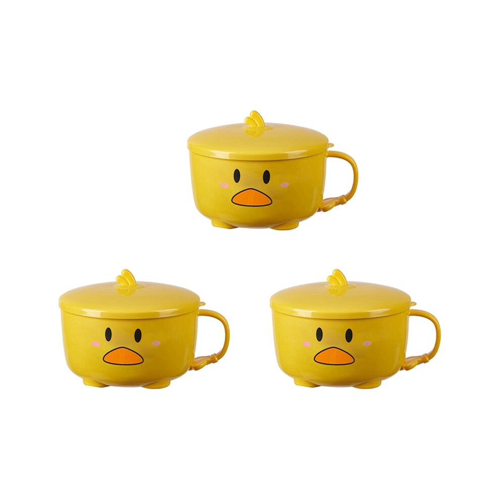 3 x Duck Ramen Noodle Bowl with Lid Cute Stainless Steel Kitchen Fruit Instant Soup Double Layer Bowl Tableware 2