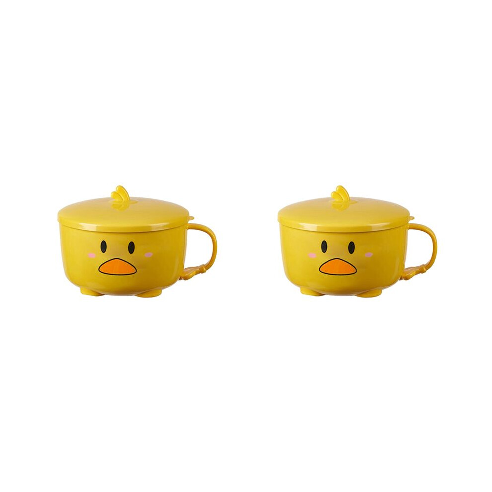 2 x Duck Ramen Noodle Bowl with Lid Cute Stainless Steel Kitchen Fruit Instant Soup Double Layer Bowl Tableware 2 Ref: 7904