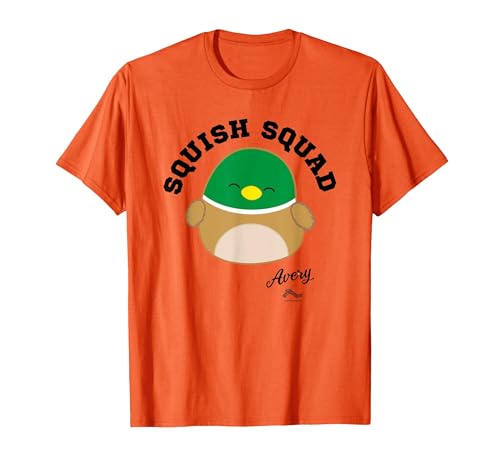 Squishmallows Squish Squad Avery Mallard Duck T-Shirt, Men, Orange, Medium
