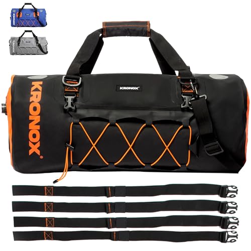 Kronox Waterproof Duffel Bag for Men & Women - Large Motorcycle Duffle Bag - Heavy Duty & Reflective - Large Dry Bag for Boating, Ideal for Boat Gear, Black, 40 Liters, Motorcycle Offroad