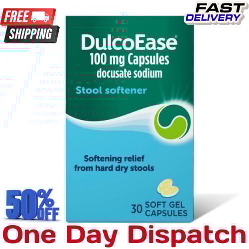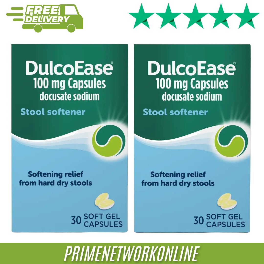 2x DulcoEase 100mg Stool Softener – 30 Soft Gel Capsules 100% ORIGINAL ⭐⭐⭐⭐⭐