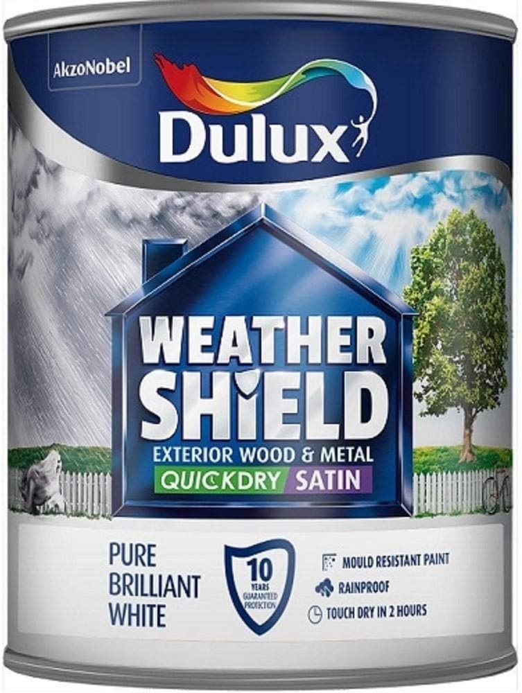 Dulux Weather Shield Quick Dry Satin Paint, 750 ml - Pure Brilliant White - Pac