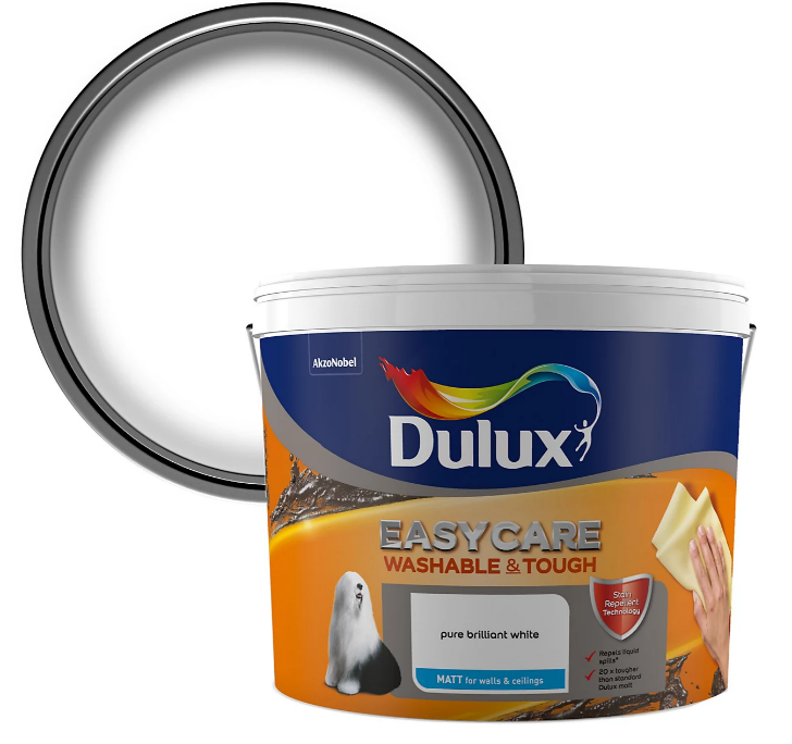 Dulux Easycare Matt Emulsion - 10L Walls &Ceilings Pure Brilliant White