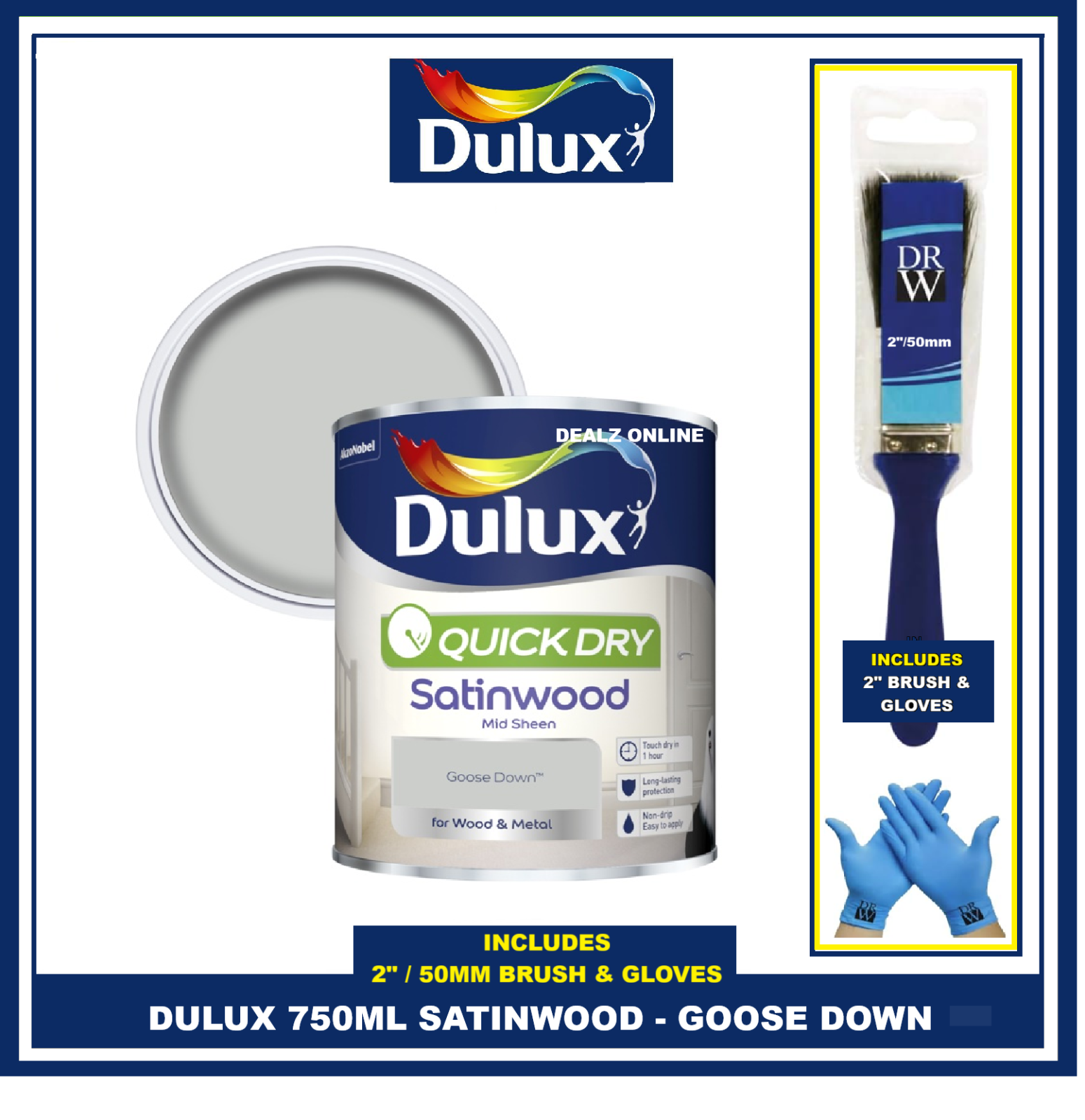 Dulux Quick Dry Goose Down 750ML Satinwood Wood/Metal Paint FREE BRUSH & GLOVES