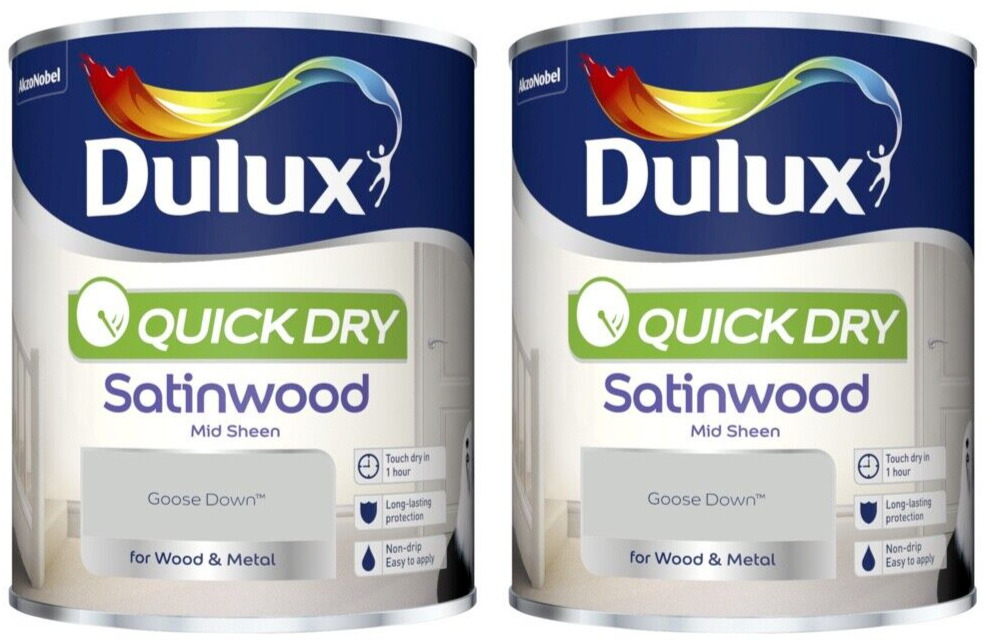 2x Dulux Wood Metal Interior Satinwood Non-Drip Mid Sheen Paint 750ml GOOSE DOWN